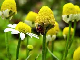 德國洋甘菊 德國洋甘菊花開其花心會隨著時間向上凸起 圖示有一朵花瓣全展開也較不突起的是較嫩的花喔 將德國洋甘菊與羅馬洋甘菊的花做比較 有小圓錐頭花 狀的是德甘的花 洋甘菊有 地上的蘋果 之稱 其氣味帶有類似蘋果的香氣 green insects animals